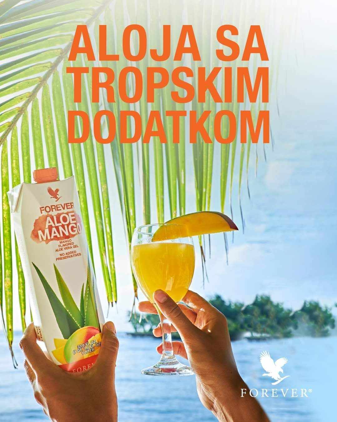 Dodali smo tropski doživljaj u naš najnoviji napitak od aloje! Forever Aloe Mango sadrži sve blagodeti našeg dobro poznatog Forever Aloe Vera Gela, uz 86% čiste aloe vere i odličnog ukusa prirodnog, tropskog pirea manga.